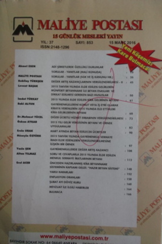 Maliye Postası 2016 / 853