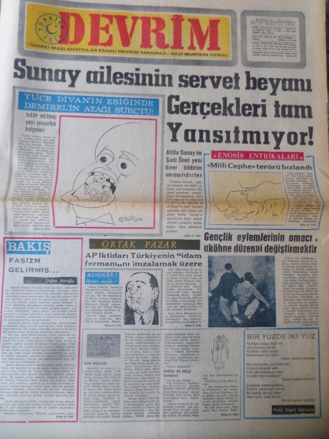 Devrim Gazetesi 24 Mart 1970 - Sunay Ailesinin Servet Beyanı Gerçekleri Tam Yansıtmıyor