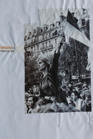 Eski Gazeteden Kesilmiş Bir Fotoğraf "Gerçekçi ol, imkansızı iste" (resim siyah-beyaz)