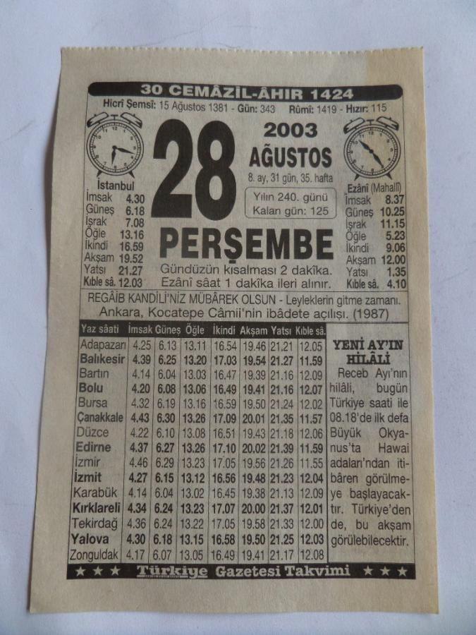 Eski Takvim Yaprağı 2003 / 28 Ağustos Perşembe