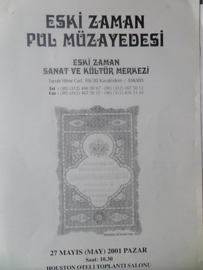 Eski Zaman Sanat ve Kültür Merkezi 2001 / 27 Mayıs - Eski Zaman Pul Müzayedesi