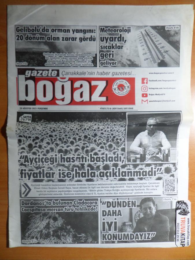 Gazete Boğaz 26 Ağustos 2021 Perşembe - Gelibolu'da Orman Yangını...