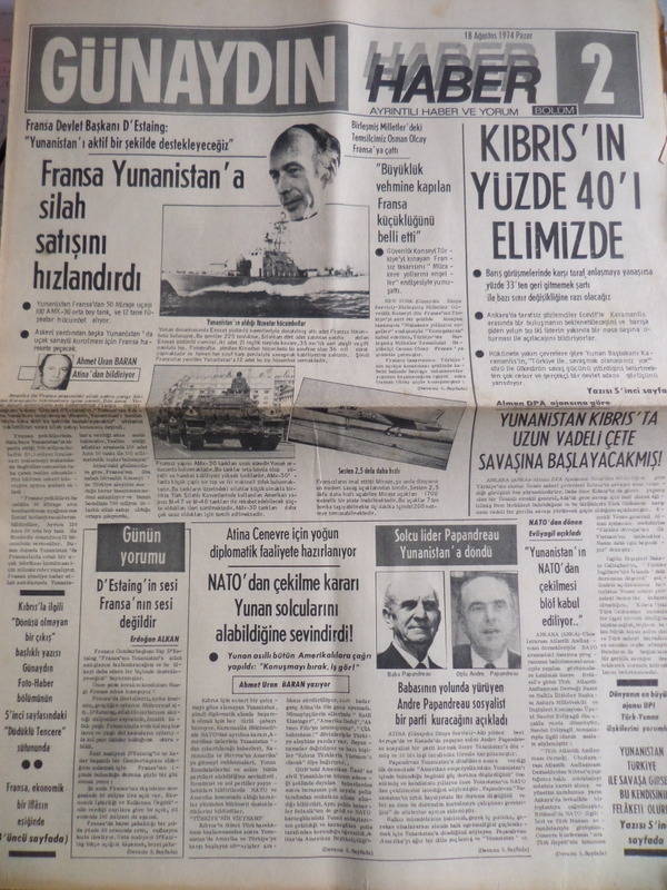 Günaydın Gazetesi 18 Ağustos 1974 - Fransa Yunanistan'a Silah Satışını Hızlandırdı