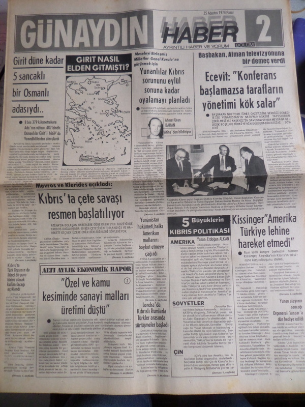 Günaydın Gazetesi 25 Ağustos 1974 - Girit Nasıl Elden Gitmişti