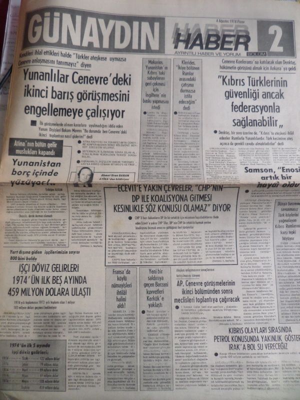 Günaydın Gazetesi 4 Ağustos 1974 - Yunanlılar Cenevre'deki İkinci Barış Görüşmesini Engellemeye Çalışıyor