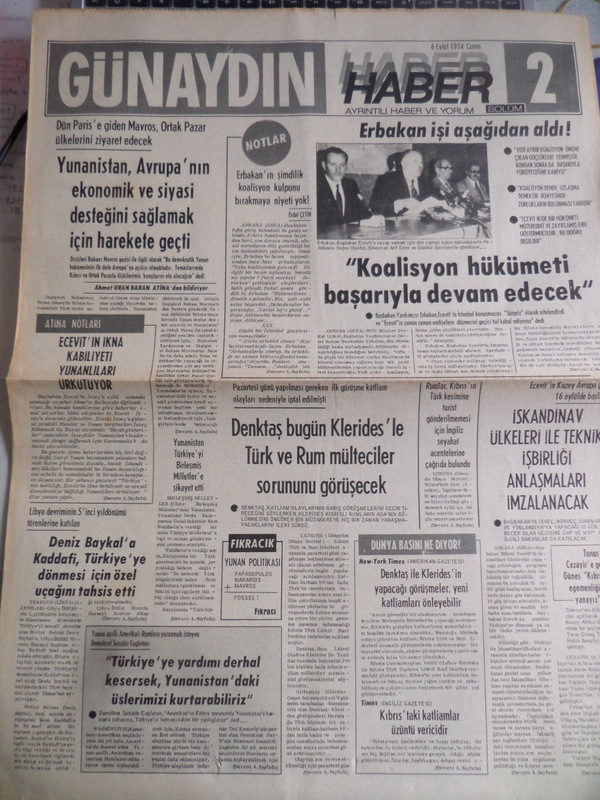 Günaydın Gazetesi 27 Ağustos 1974 - Denktaş ve Klerides Kıbrıs'ta Görüştü