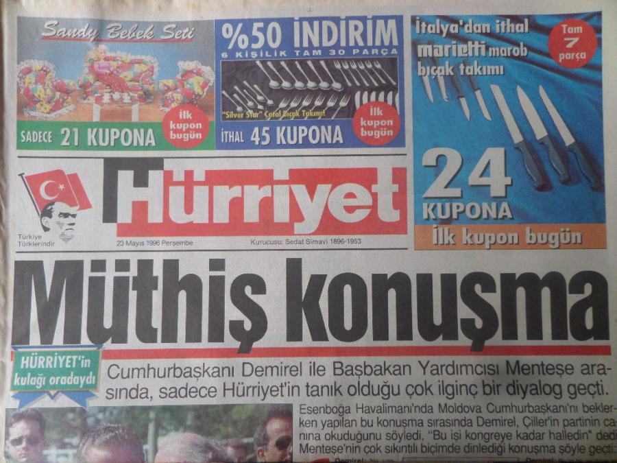 Hürriyet Gazetesi 23 Mayıs 1996 - Müthiş Konuşma