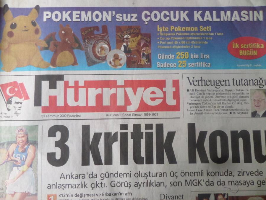 Hürriyet Gazetesi 31 Temmuz 2000 - 3 Kritik Konu