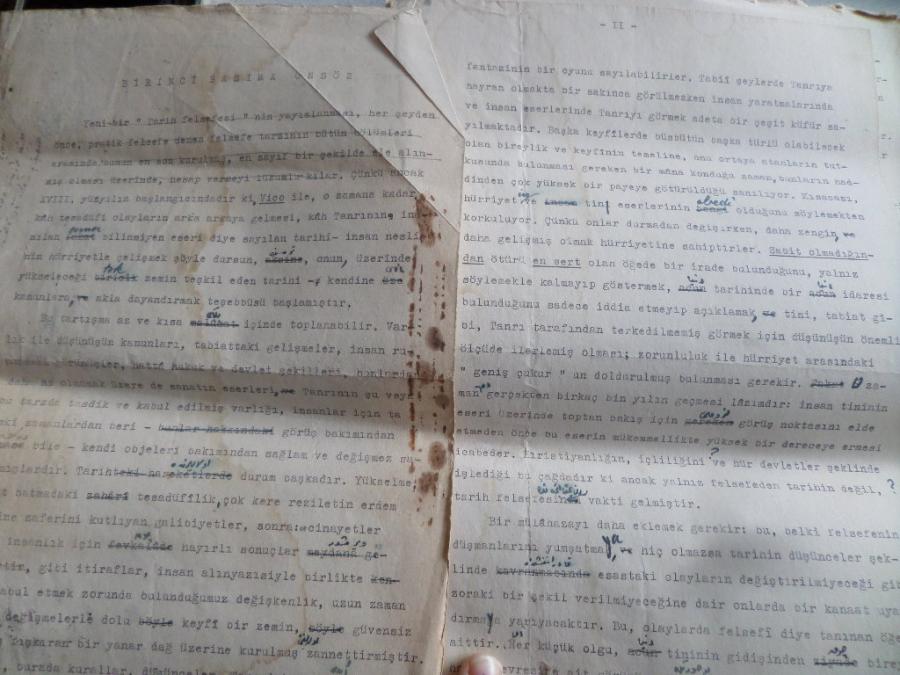 Osmanlıca Elyazılı Sahifeler ve Felsefeyle İlgili Daktilo Yazıları