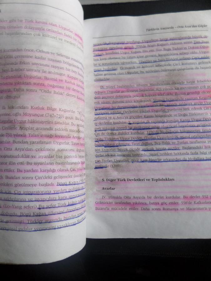 sayfaların satır altları fosforlu kalemle çizilmiş