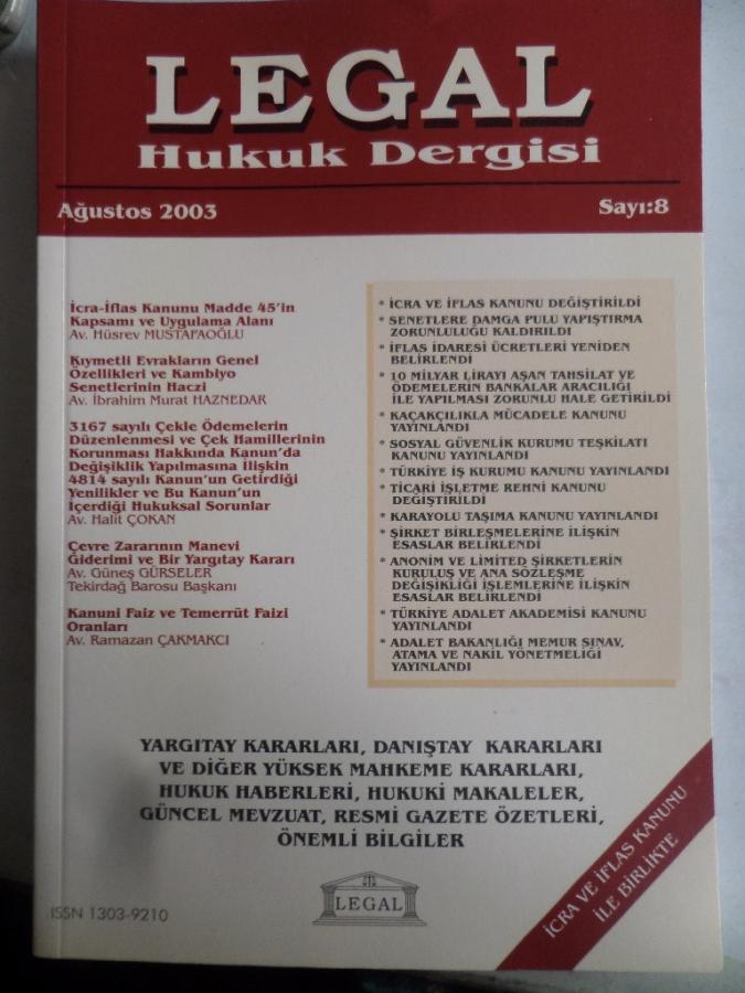 Legal Hukuk Dergisi 2003 / 8