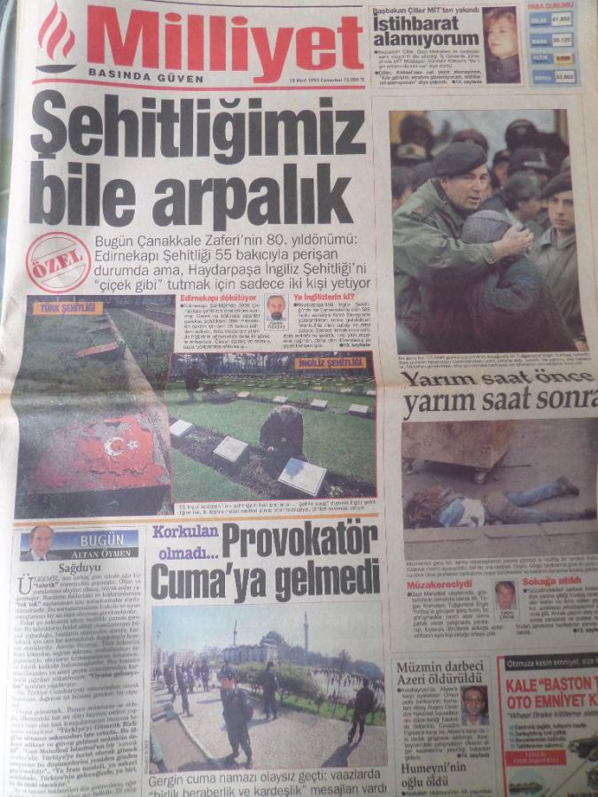 Milliyet Gazetesi 18 Mart 1995 - Şehitliğimiz Bile Arpalık