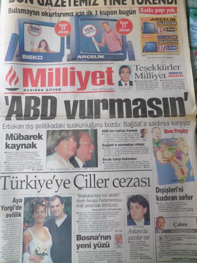 Milliyet Gazetesi 20 Eylül 1996 - ABD Vurmasın
