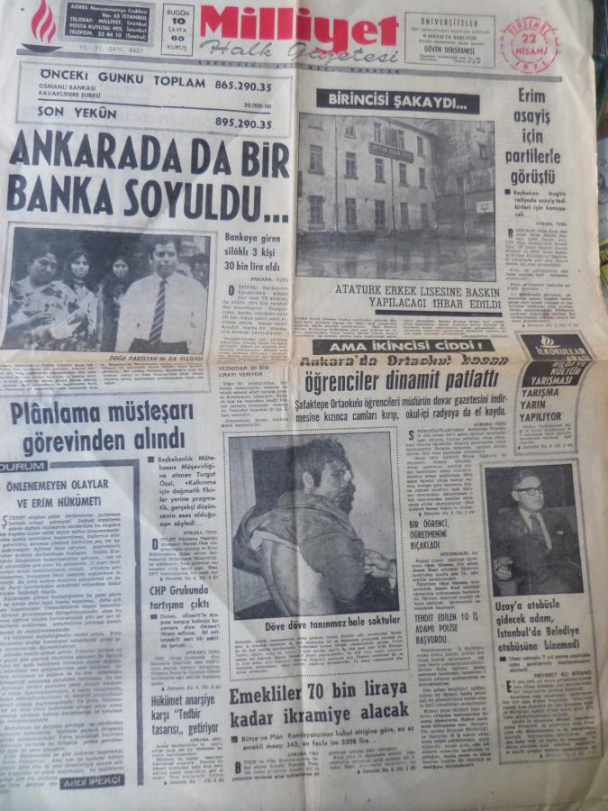 Milliyet Gazetesi 22 Nisan 1971 - Ankarada da Bir Banka Soyuldu