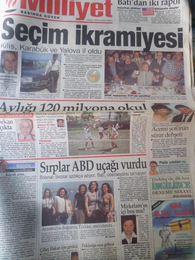 Milliyet Gazetesi 3 Haziran 1995 - Seçim İkramiyesi