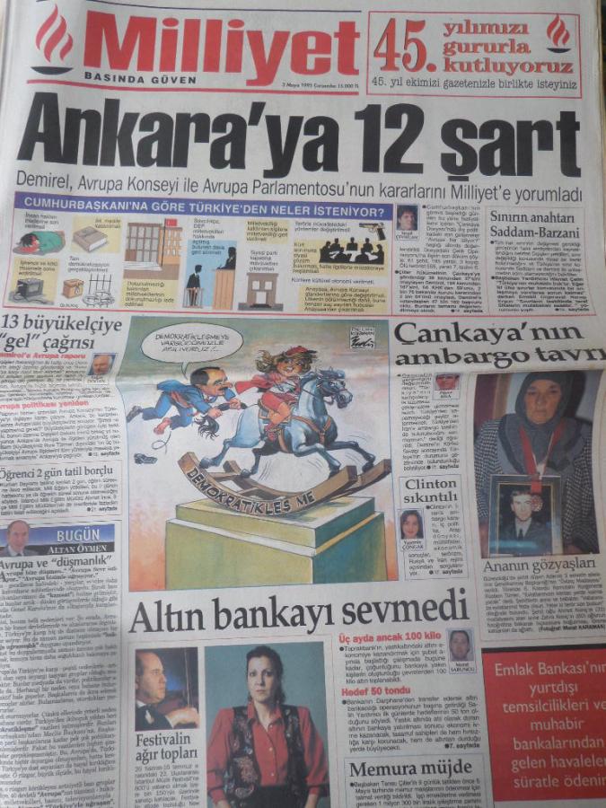 Milliyet Gazetesi 3 Mayıs 1995 - Ankara'ya 12 Şart
