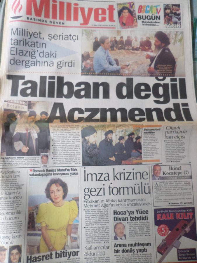 Milliyet Gazetesi 5 Ekim 1996 - Taliban Değil Aczmendi