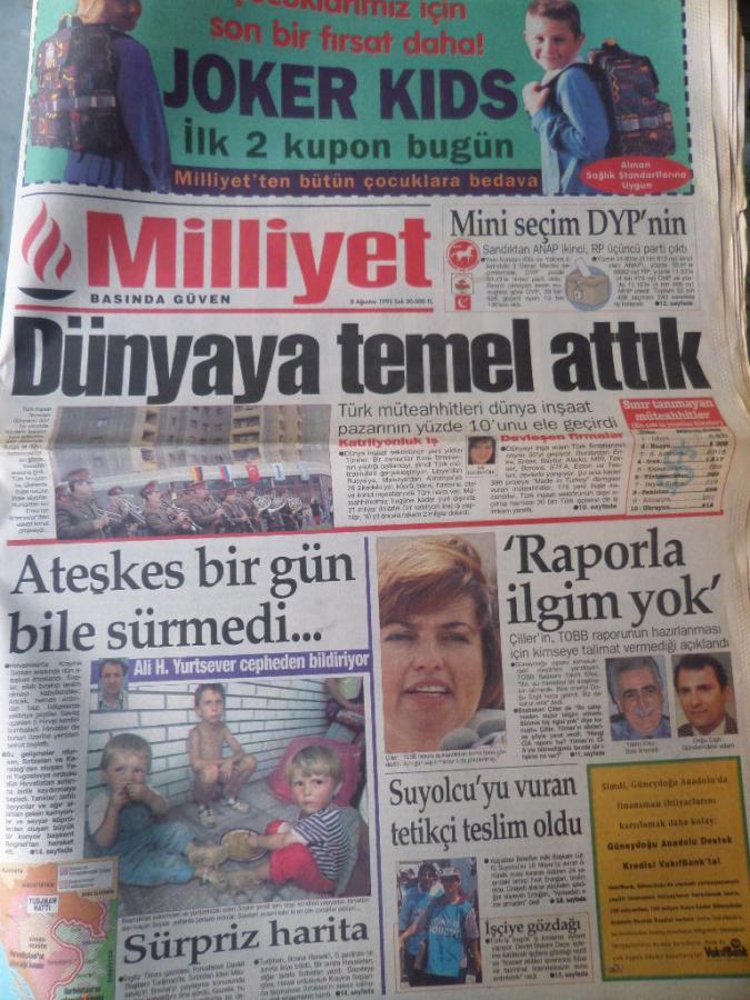 Milliyet Gazetesi 8 Ağustos 1995 - Dünyaya Temel Attık