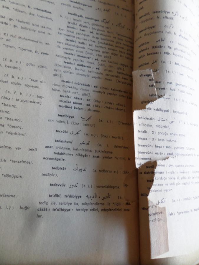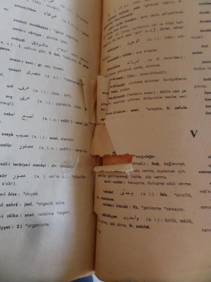 İlave Lugatta buunmayan kelime, terkip, deyim ve terimler 118 sayfadan oluşuyor ve bir kaç sayfası fotoğrafta göründüğü gibi biraz yırtılma var