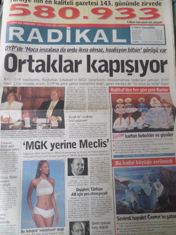 Radikal Gazetesi 6 Mart 1997 - Ortaklar Kapışıyor