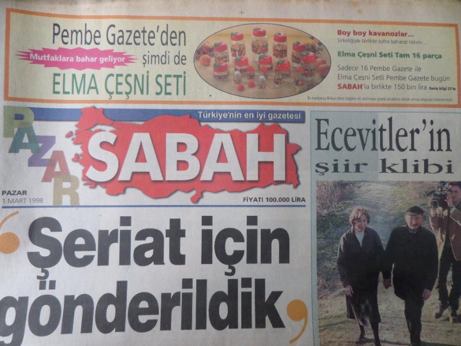 Sabah Gazetesi 1 Mart 1998 - Şeriat İçin Gönderildik