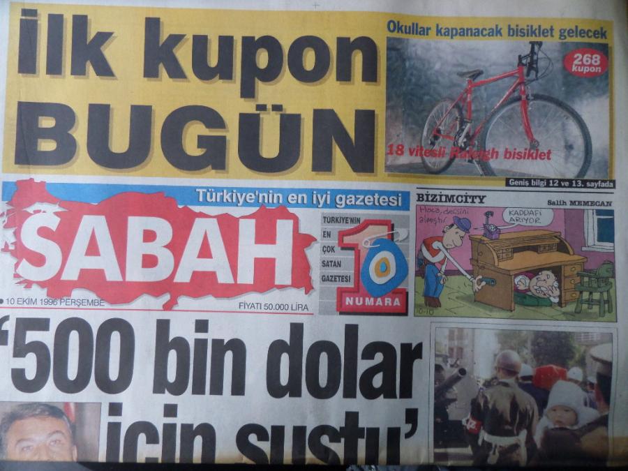 Sabah Gazetesi 10 Ekim 1996 - 500 Bin Dolar İçin Sustu