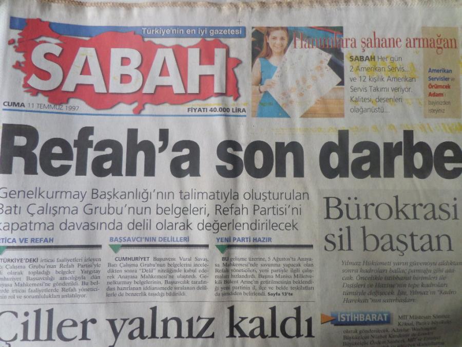 Sabah Gazetesi 11 Temmuz 1997 - Refah'a Son Darbe