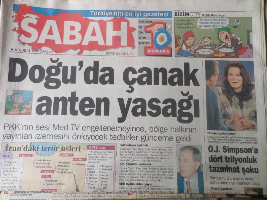 Sabah Gazetesi 12 Şubat 1997 - Doğu'da ÇAnak Anten Yasağı