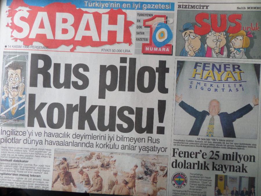 Sabah Gazetesi 14 Kasım 1996 - Rus Pilot Korkusu