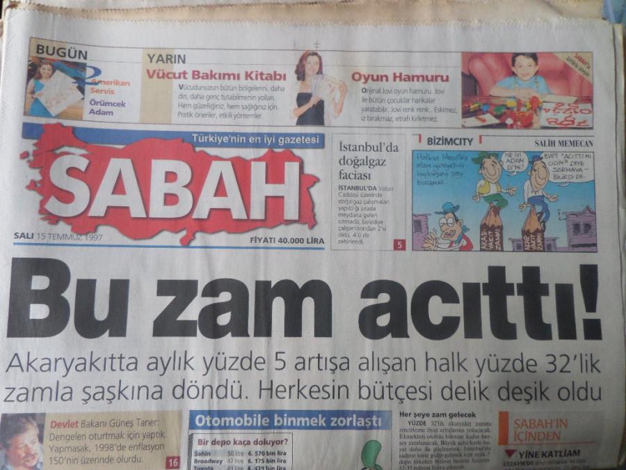 Sabah Gazetesi 15 Temmuz 1997 - Bu Zam Acıttı