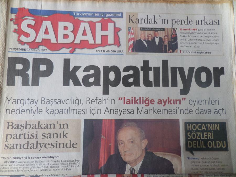 Sabah Gazetesi 22 Mayıs 1997 - RP Kapatılıyor