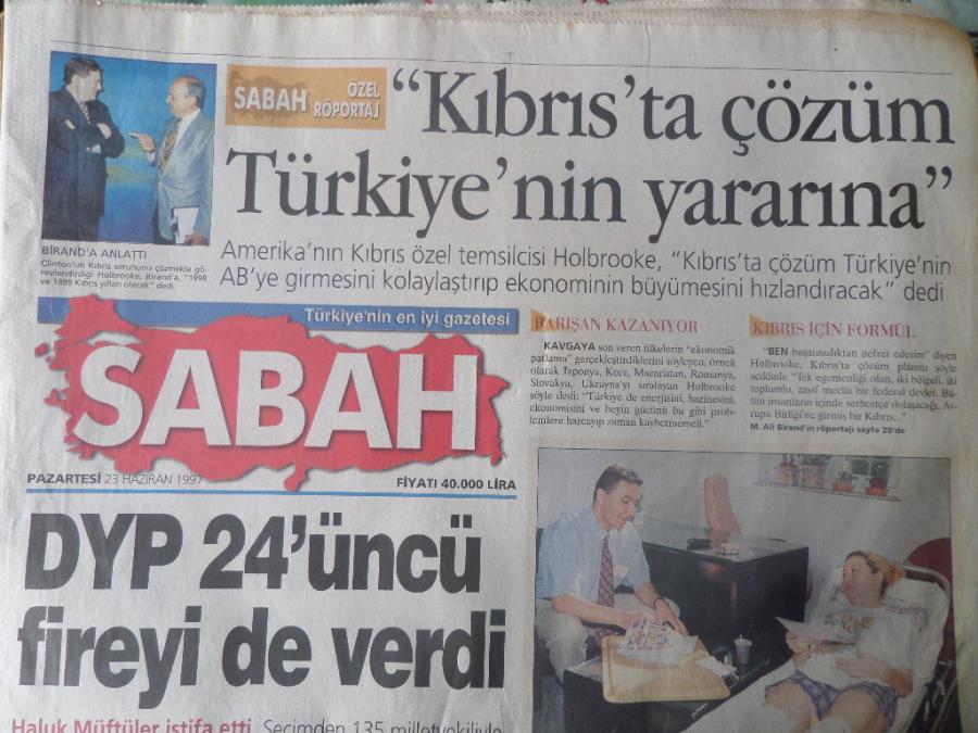 Sabah Gazetesi 23 Haziran 1997 - DYP 24'üncü Fireyi de Verdi