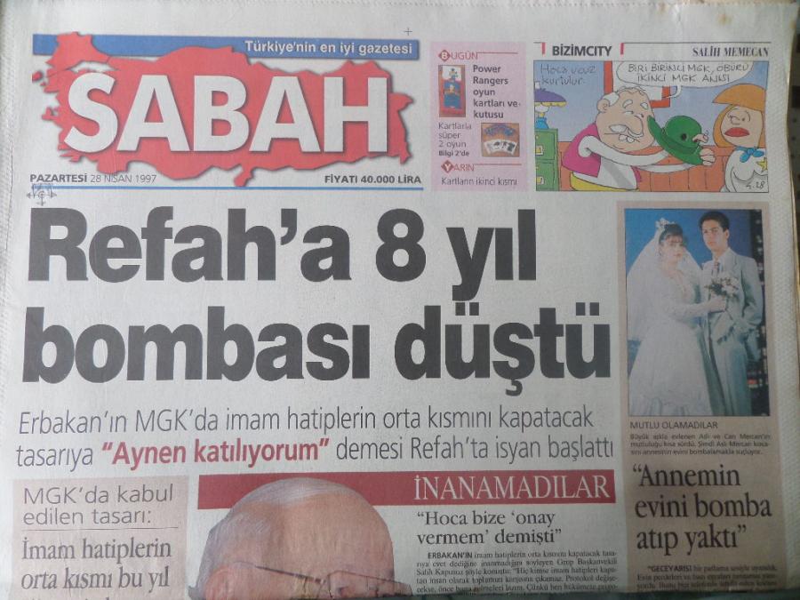 Sabah Gazetesi 28 Nisan 1997 - Refah'a 8 Yıl Bombası Düştü