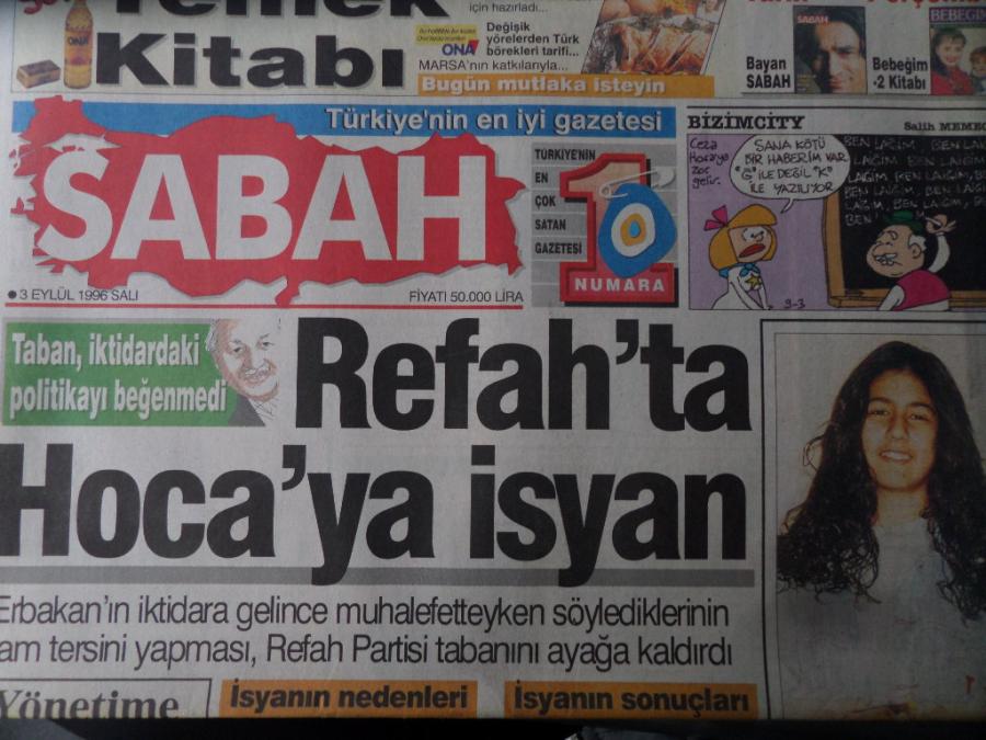 Sabah Gazetesi 3 Eylül 1996 - Refah'ta Hoca'ya İsyan