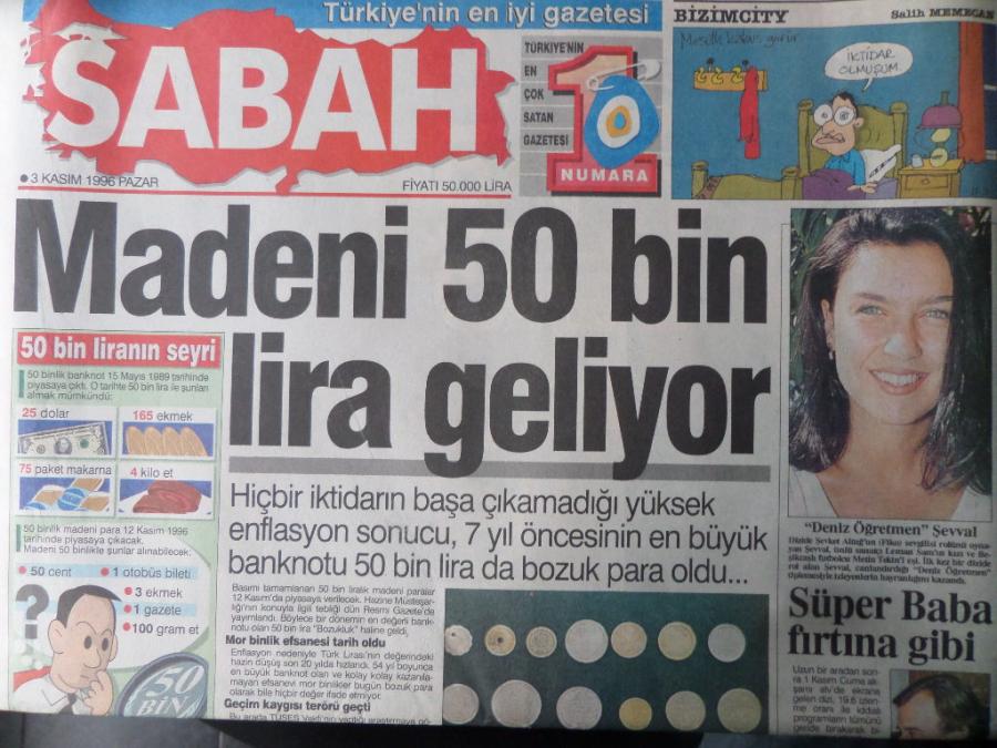 Sabah Gazetesi 3 Kasım 1996 - Madeni 50 Bin Lira Geliyor