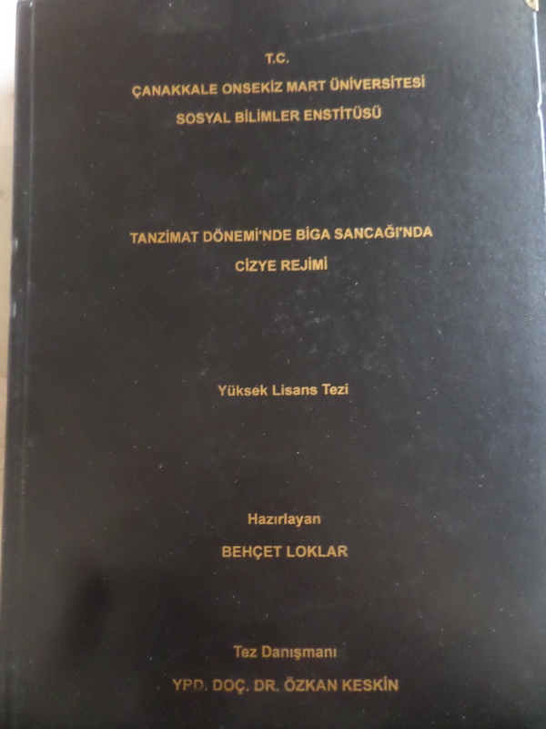 Tanzimat Dönemi'nde Biga Sancağı'nda Cizye Rejimi ( Yüksek Lisans Tezi )